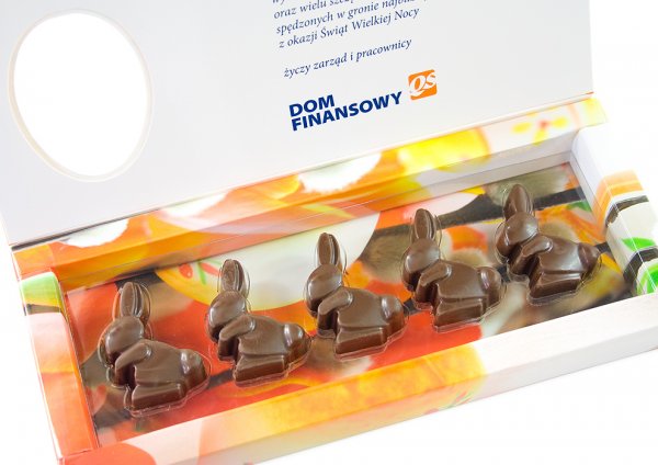 • bunnies made of milk 33%, dessert 55% or white chocolate – after inquiry