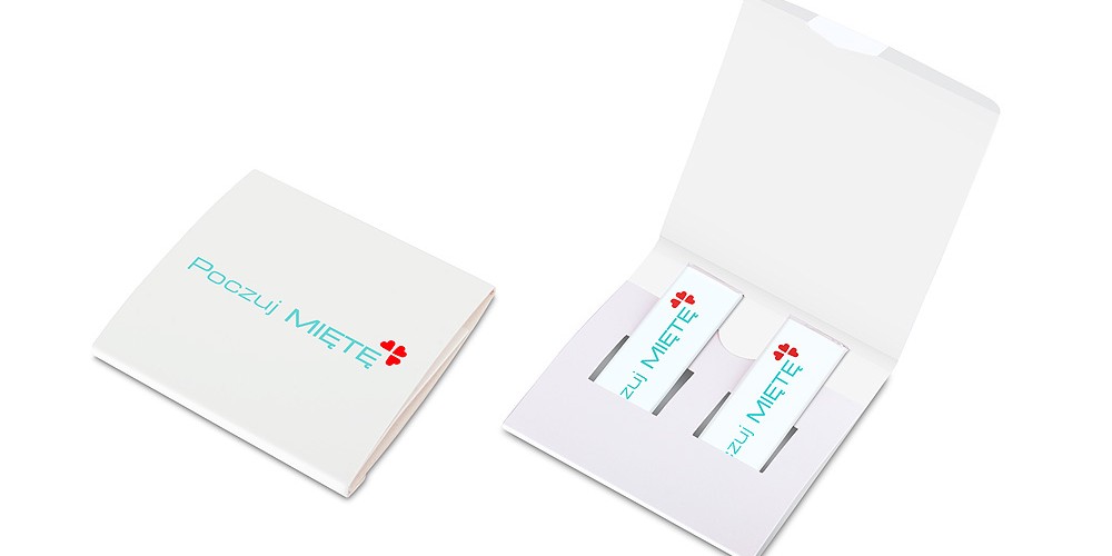Chewing gum leaf wrapped in silver laminate and label with promotional prin