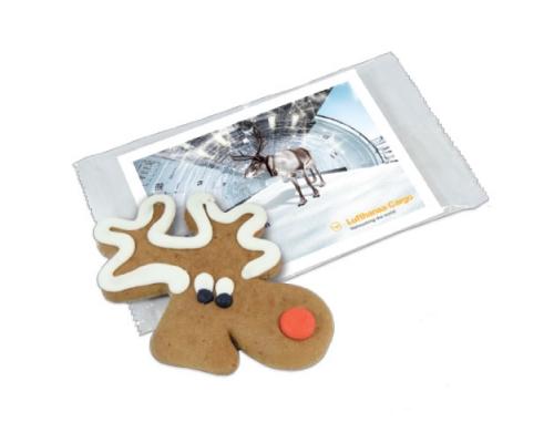 Gingerbread Reindeer Figure in foil with printed promotional card