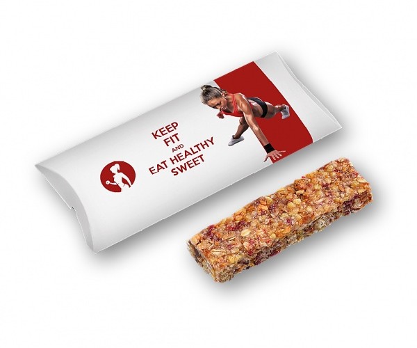 Muesli cereal bar in a box with promotional print