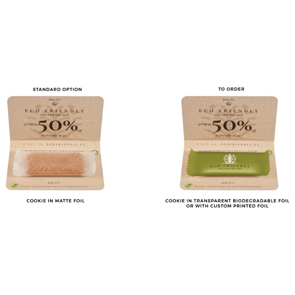 SWEET VOUCHER with four different types of content to choose from – is a perfect solution for fairs, events or other occasions at which we would like to provide customers with some more information rather than just the regular, sweet “nice to see you” gift. The Sweet Voucher may become a name card or a discount coupon. It may also serve as an invitation to a specific event.