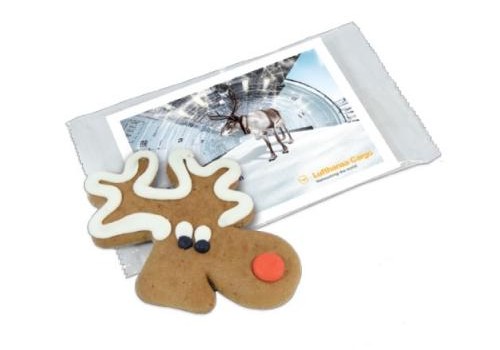 Gingerbread Reindeer Figure Gingerbread Reindeer Figure in foil with printed promotional card Product size: 170 x 115 x 15 mm Weight 1 pc: 45 g Minimum order: 300 pcs